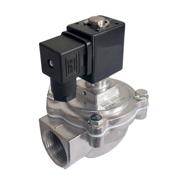 Válvula de duas vias com elemento em diafragma, própria para fluidos limpos e gases, oferecendo vedação eficiente e acionamento rápido.